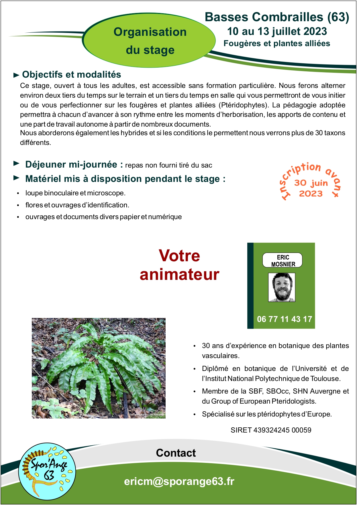 Stage Fougères et Plantes alliées Nord AUVERGNE Juillet 2023 Eric MOSNIER