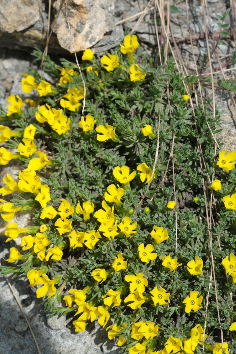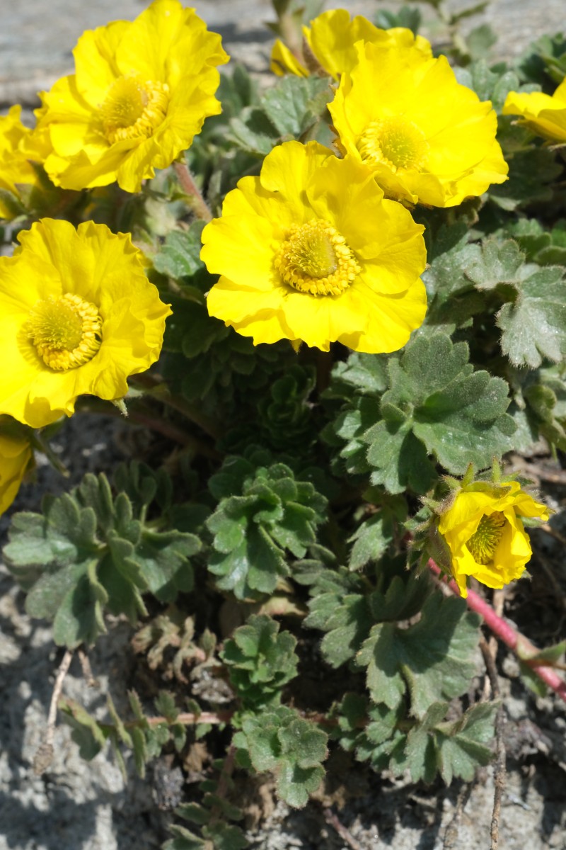 D'abord deux petites rosaceae jaunes, Geum reptans et Potentilla crantzii :