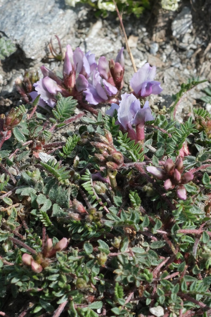 • Oxytropis helvetica, différenciable des astragales par la petite pointe au bout de la fleur :