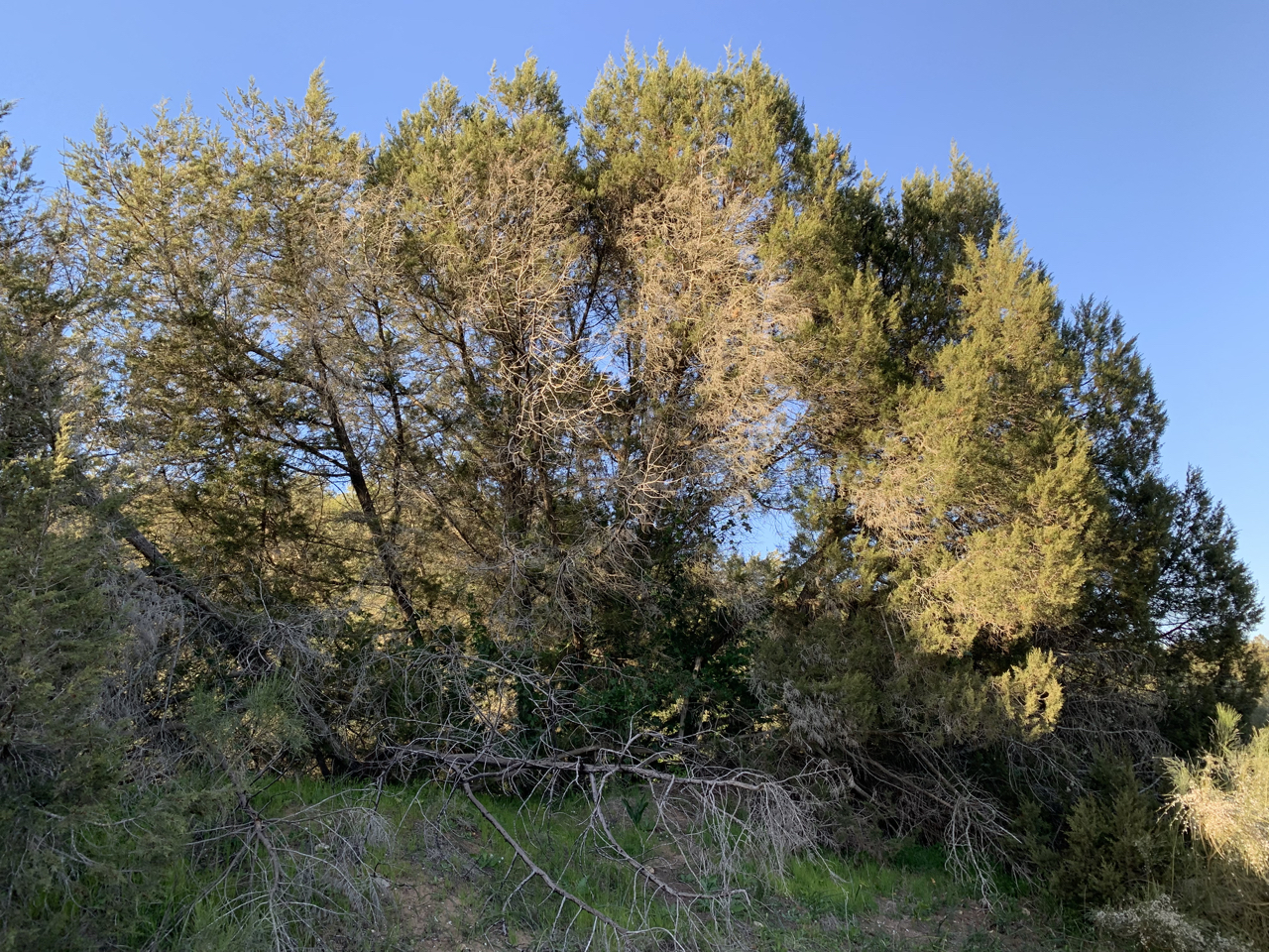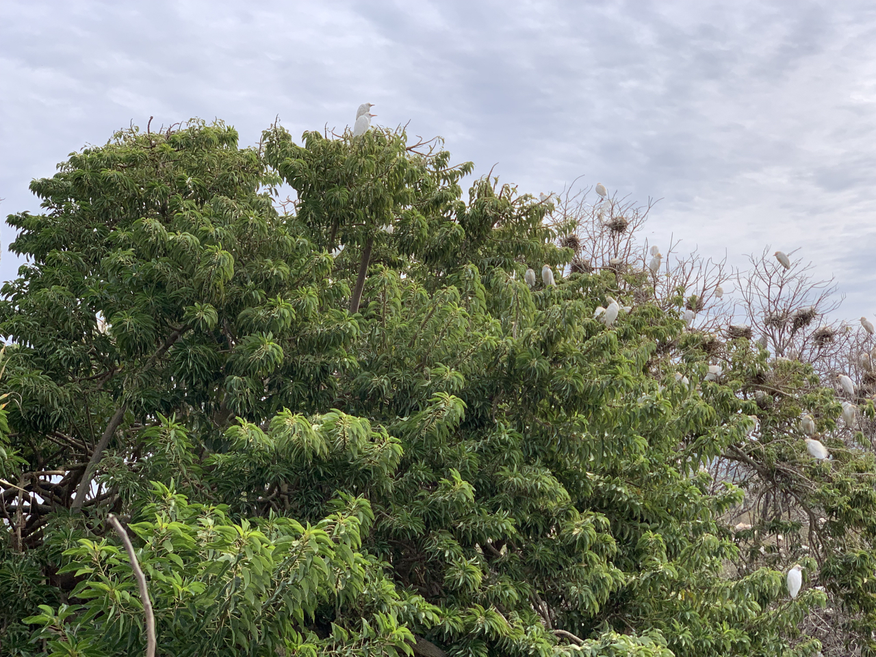 tandis que les hérons garde boeufs occupent les énormes Phytolacca dioica autour du site