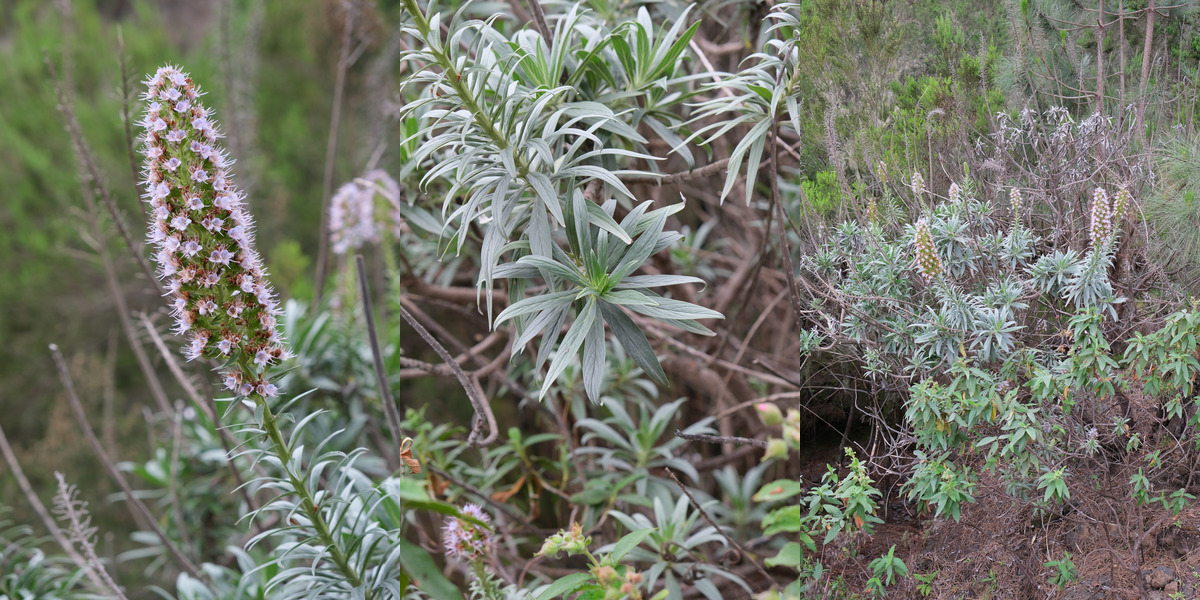 • Echium virescens, vue en forêt, celle touchée par les incendies de l'année passée, côté humide à l'ouest de l'île. La zone est en grande partie interdite d'accès, assez triste à voir...